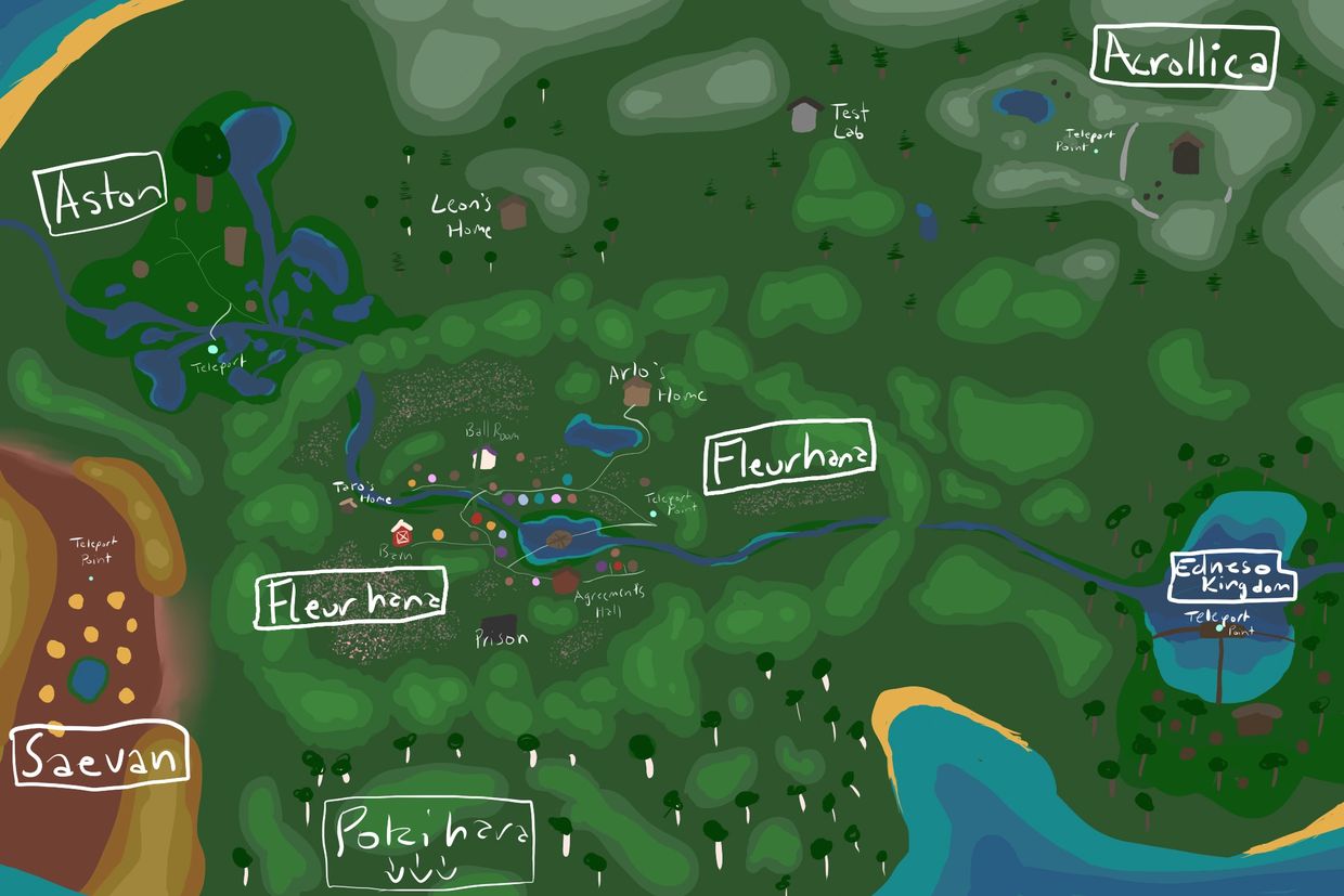 A newly built town run by Aza. The population is mostly elders who had enough of the bustling streets of Fleurhana and wanted to live somewhere quieter. Aston is situated in a swamp, so not much other than lily pads and algae grows. The frogs sing to the people at dusk.